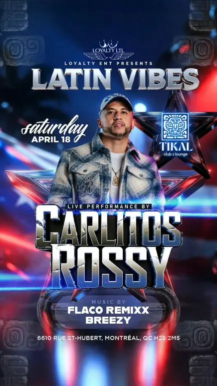 Get ready for an unforgettable night with Carlitos Rossy live in action! Join us at 6610 Rue St-Hubert on April 18, 2026 at 10:00 PM (Eastern Daylight Time). This is your chance to vibe with some amazing Latin beats and good times. Don’t miss out on the fun – bring your friends and let’s make it a night to remember!