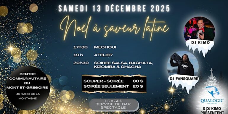 Préparez-vous à vivre une soirée inoubliable avec Qualogic et DJ Kimo. La magie des Fêtes rencontre la passion de la danse latine.